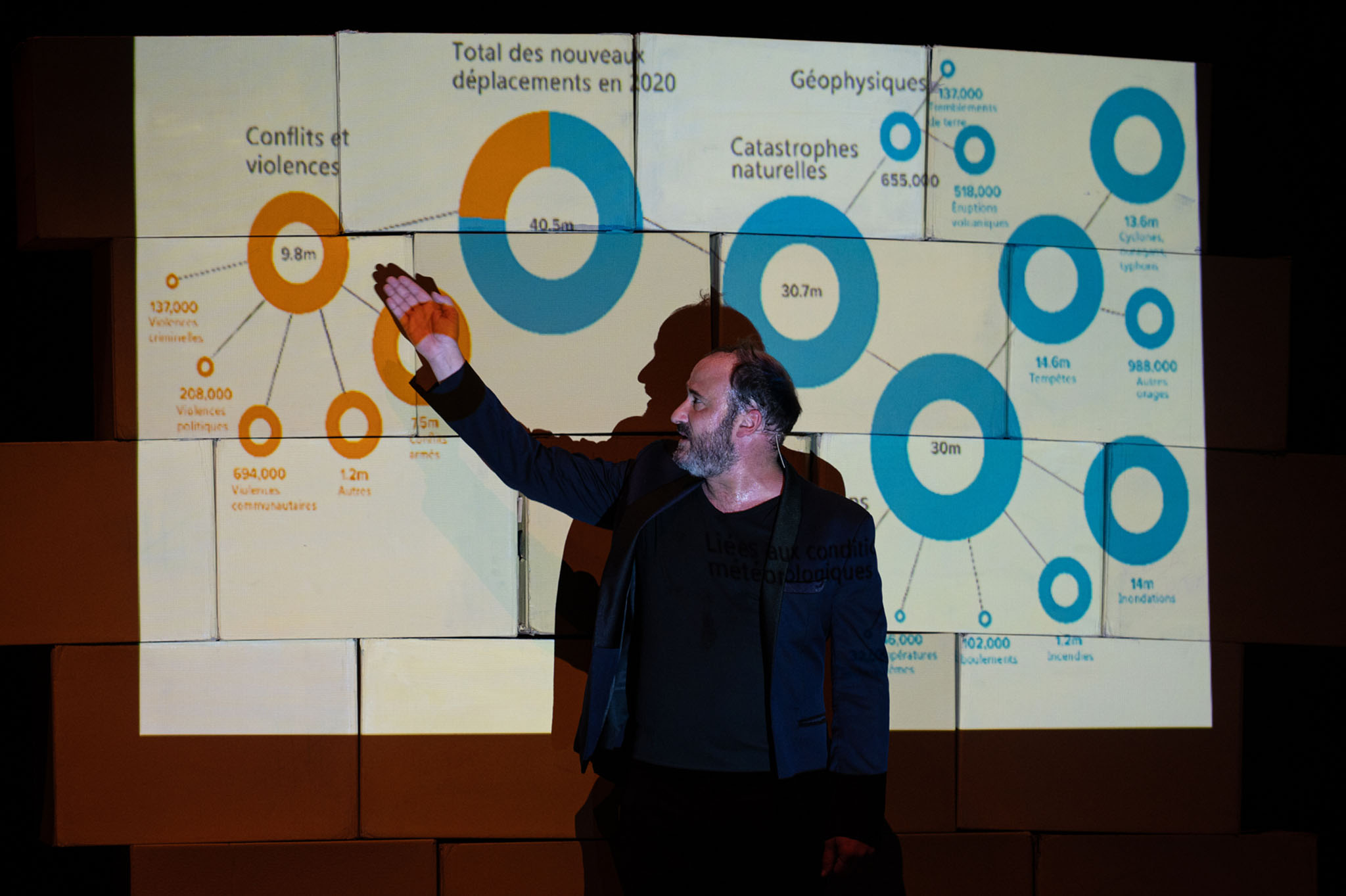 Conférence théâtralisée, Biennale #7 • Mise en scène par Michel André en collaboration avec François Gemenne et Frank Gazal